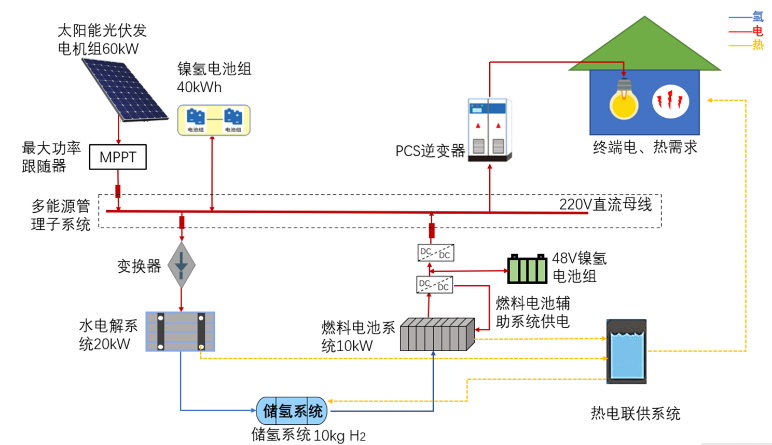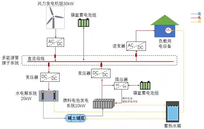 通過可再生能源儲能轉換系統(tǒng)技術集成與示范工程解決棄風、棄光限電的問題,提高系統(tǒng)的能量利用效率和運行穩(wěn)定性,實現(xiàn)風光能-氫能/儲能相結合的示范應用,為根治“棄風棄光”頑疾探索一條新途徑。